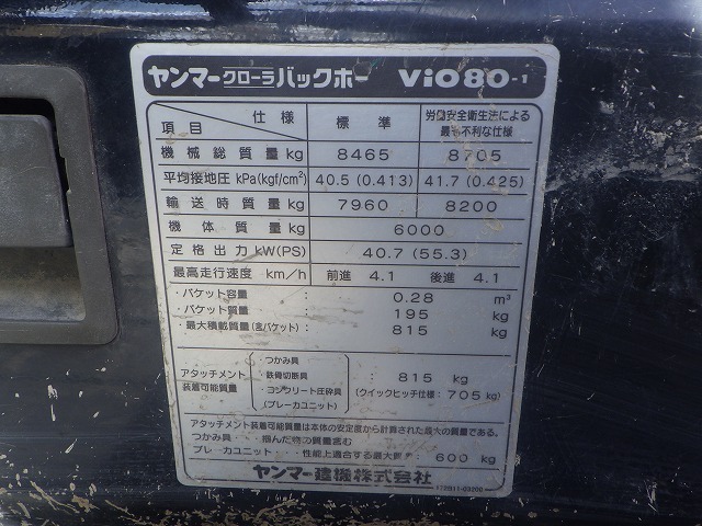 Specifications - YANMAR VIO80-1