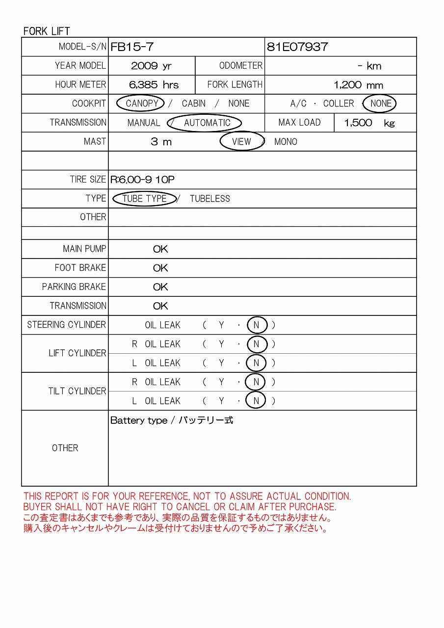 Specifications - TCM FB15-7