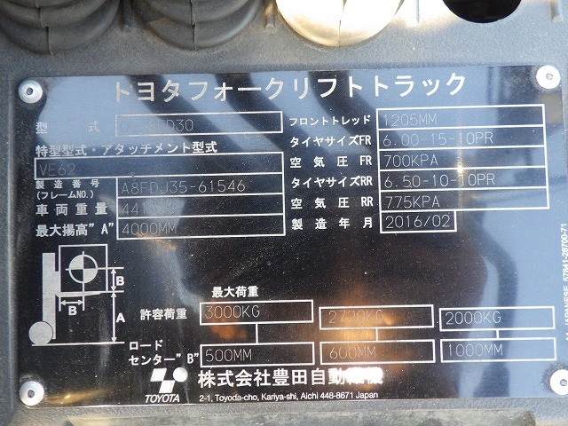 Specifications - TOYOTA 02-8FD30