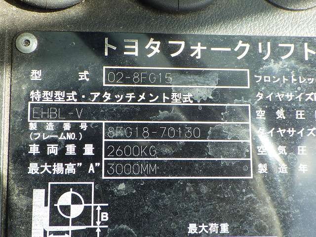 Specifications - TOYOTA 02-8FG15