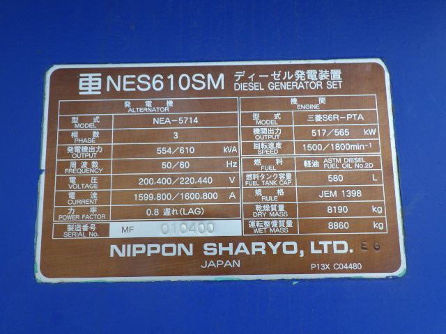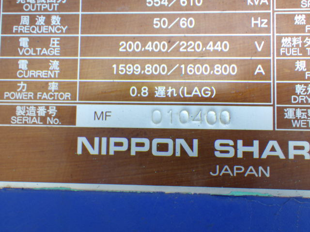GENERATOR. 554/610KVA. ENGINE: S6R.EX-YARD SHIZUOKA.