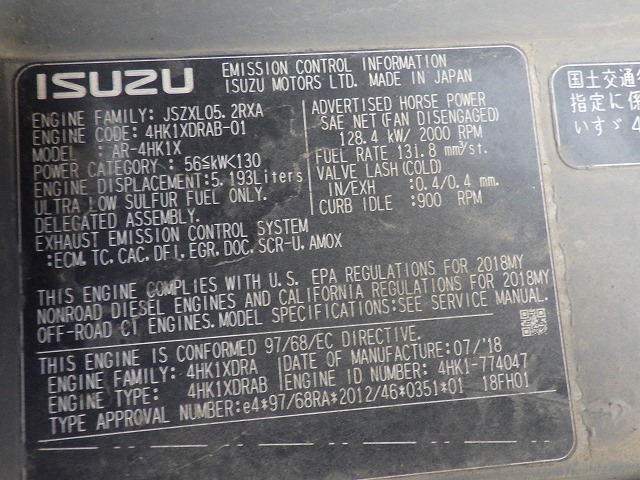 Specifications - HITACHI ZX225USRLCK-6