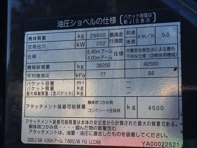 Specifications - HITACHI ZX330LCMH-5B