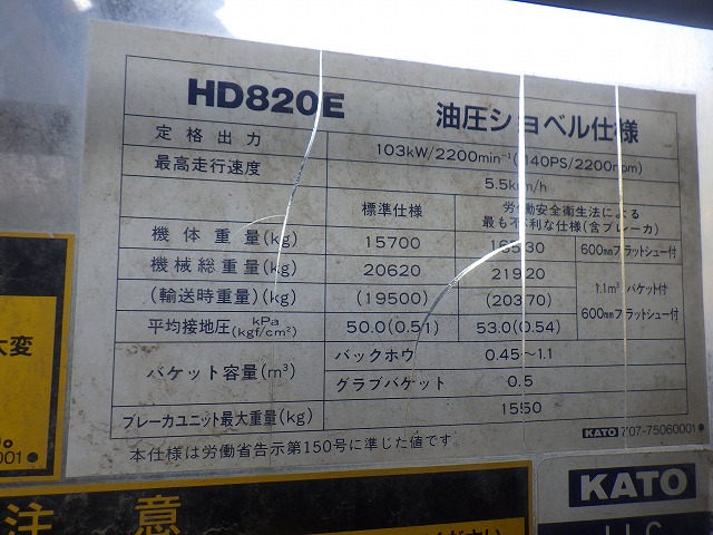 Specifications - KATO HD820E