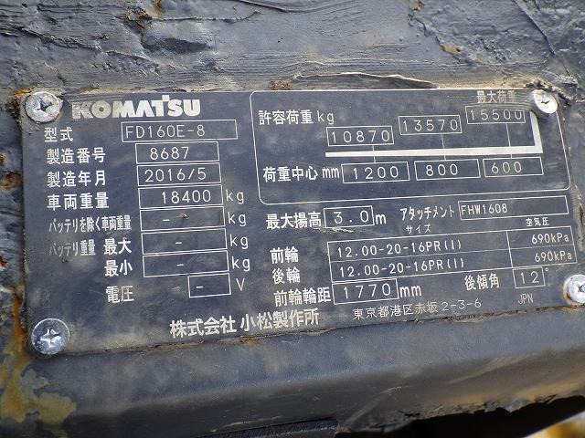 Specifications - KOMATSU FD160E-8