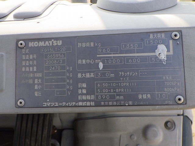 Specifications - KOMATSU FG15LT-20