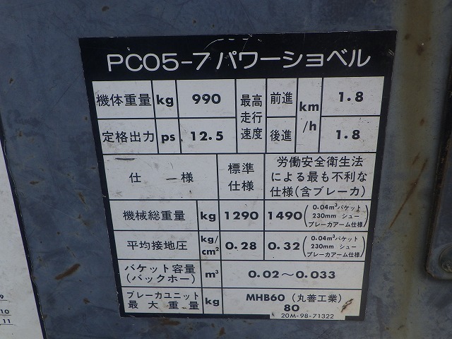 Specifications - KOMATSU PC05-7E