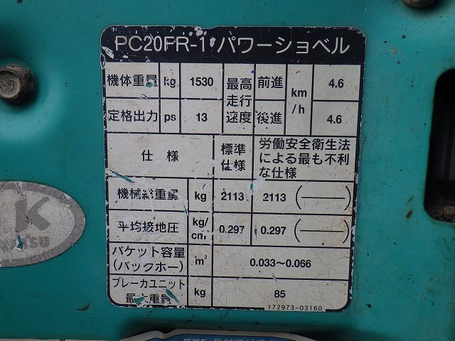 Specifications - KOMATSU PC20FR-1