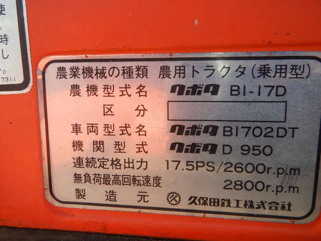 Specifications - KUBOTA B1-17D