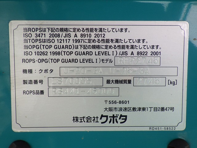 Other Equipment - KUBOTA U-25-3A