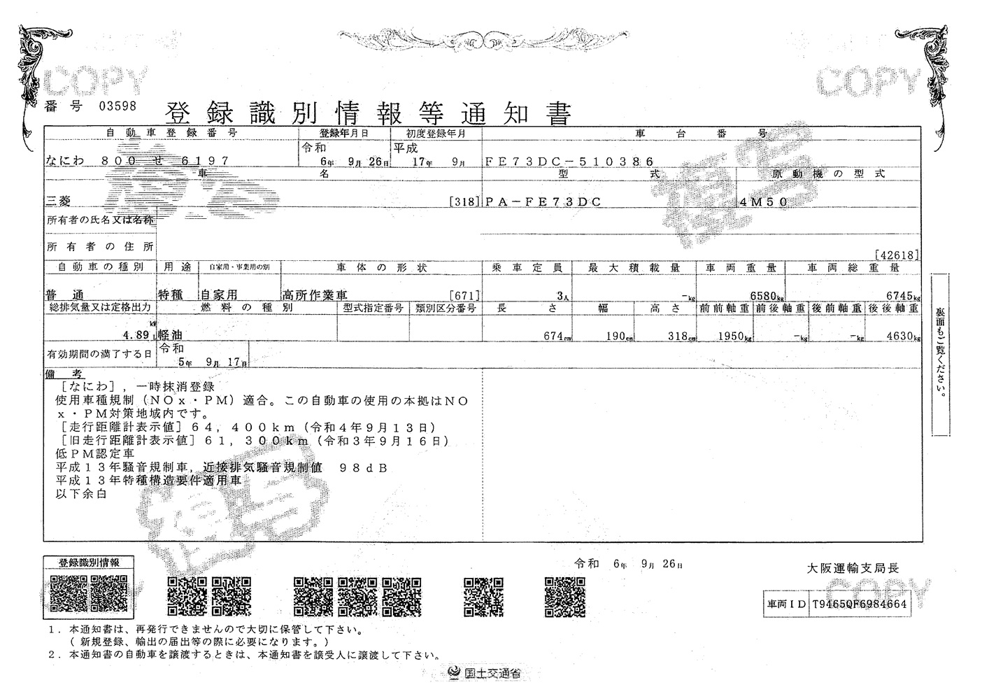 MANLIFT TRUCK, 17M, 67541KM, TADANO AT-170-1 #230399 *一時抹消 *R券 JPY8,830