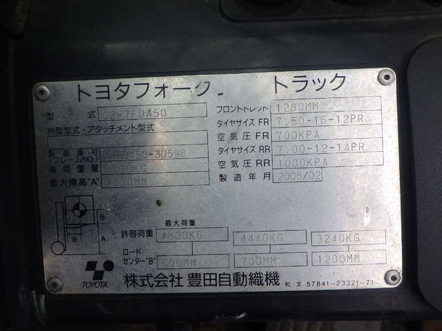 Specifications - TOYOTA 02-7FDA50