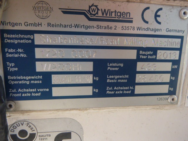 Specifications - WIRTGEN W200Hi