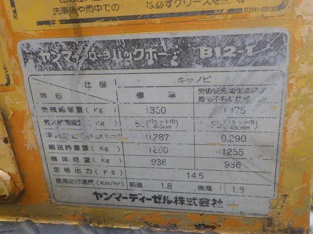 Specifications - YANMAR B12-1