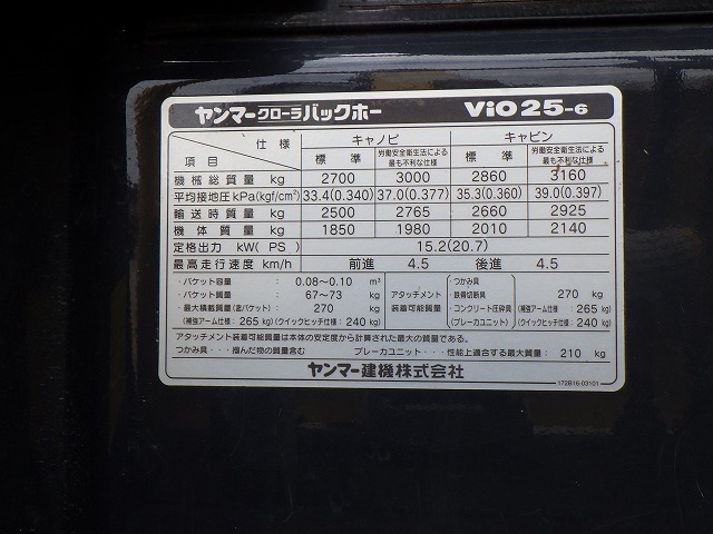 Specifications - YANMAR VIO25-6