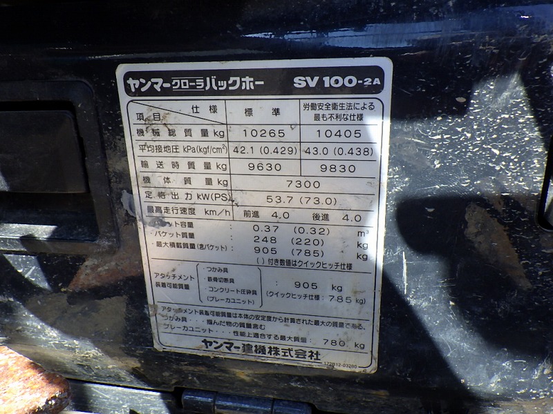 Specifications - YMR SV100-2A