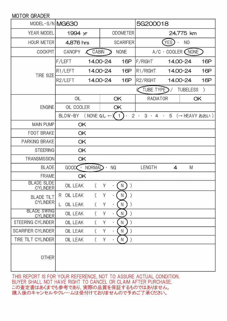 CAB, 14.00-24 16P, 4.0m BLADE, SCARIFIER, 24,775km, 一時抹消