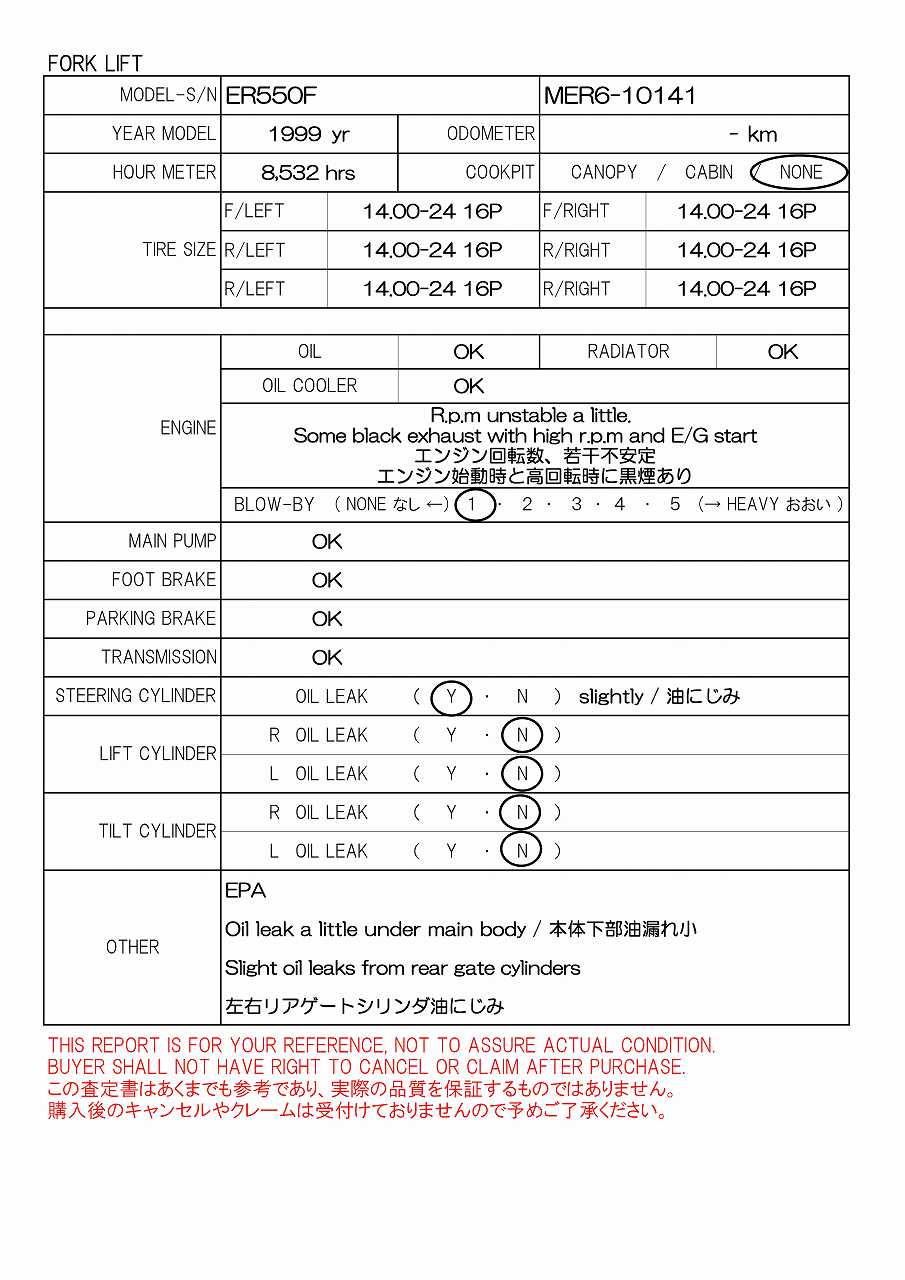 Specifications - SAKAI ER550F