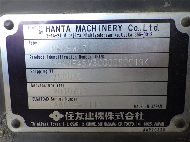 Specifications - SUMITOMO HA45W-7