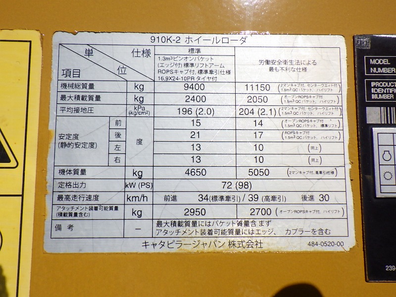 Specifications - CATERPILLAR 910K