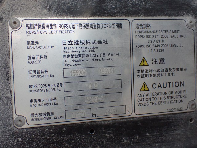 Specifications - HITACHI ZW100-6