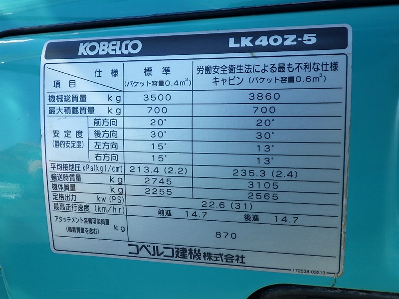 Specifications - KOBELCO LK40Z-5