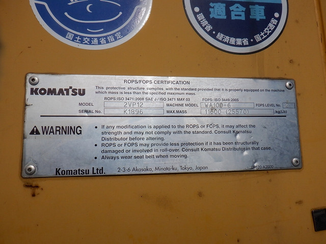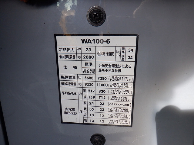 Specifications - KOMATSU WA100-6