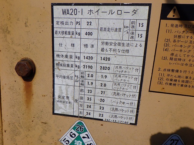 Specifications - KOMATSU WA20-1