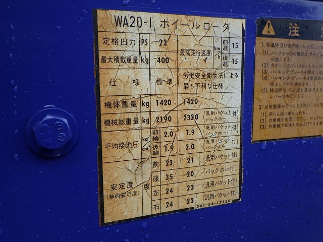 Specifications - KOMATSU WA20-1