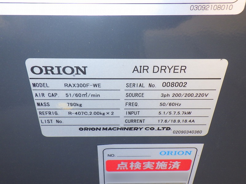 HITACHI SANKI COMPRESSOR, AIR ZEUS SDS-U, 0.93MPa, W/DRYER (ORION RAX300F-WE-008002)