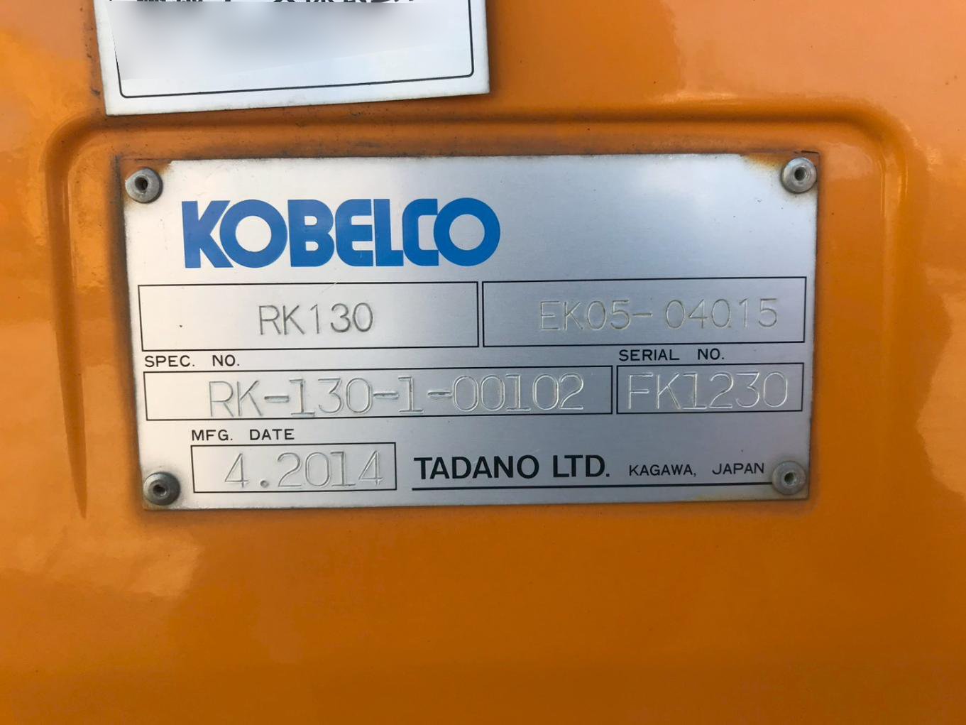 Specifications - KOBELCO RK130-1-00102
