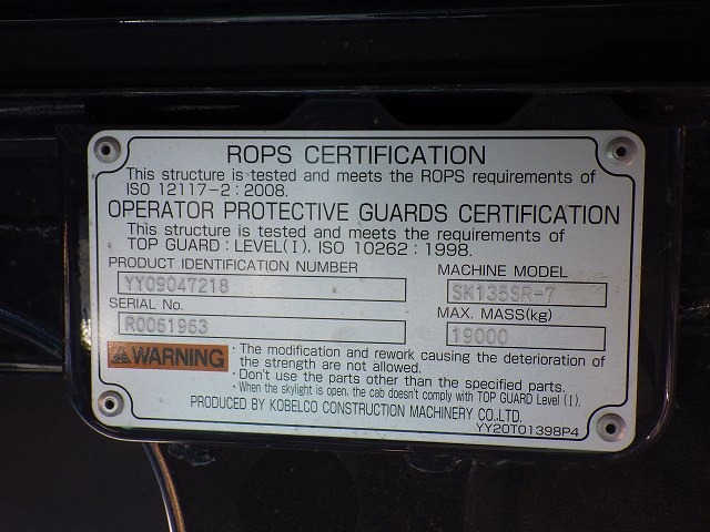 Specifications - KOBELCO SK135SR-7