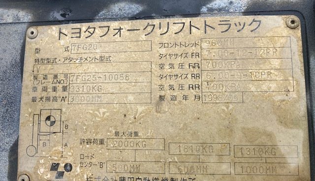 Specifications - toyota 7FG20